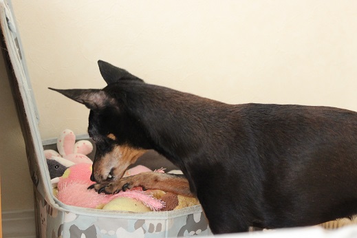 らっちゃんはおもちゃで遊んだ後に貰えるオヤツを知ってて、遊んでるふりをしますemoji
